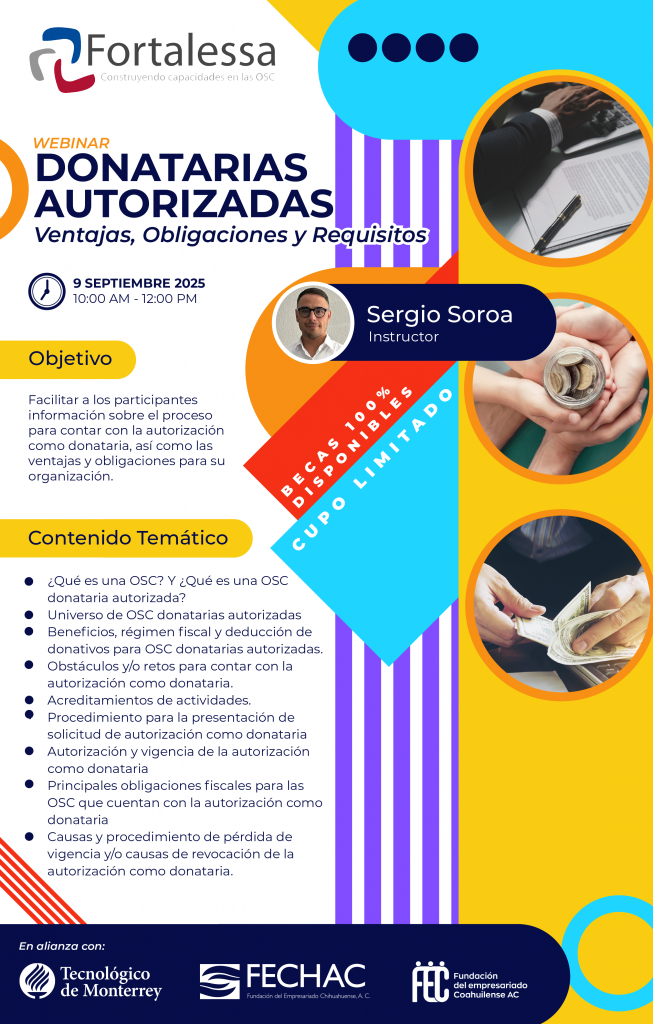 Gracias al apoyo de FECHAC, Tecnológico de Monterrey y Fortalessa, se otorgarán becas del 100% para los integrantes de organizaciones sin fines de lucro.